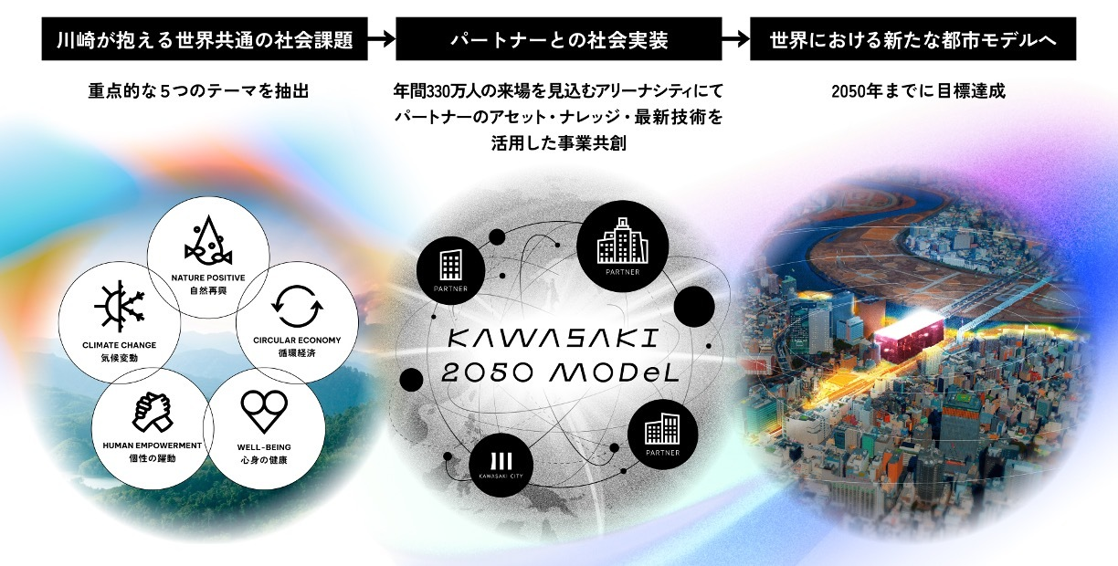 ‟Kawasaki Arena-City Project” 味の素株式会社・三菱化⼯機株式会社とのパートナーシップを締結/社会実装型サステナビリティプラットフォーム「Kawasaki 2050 Model」を開始